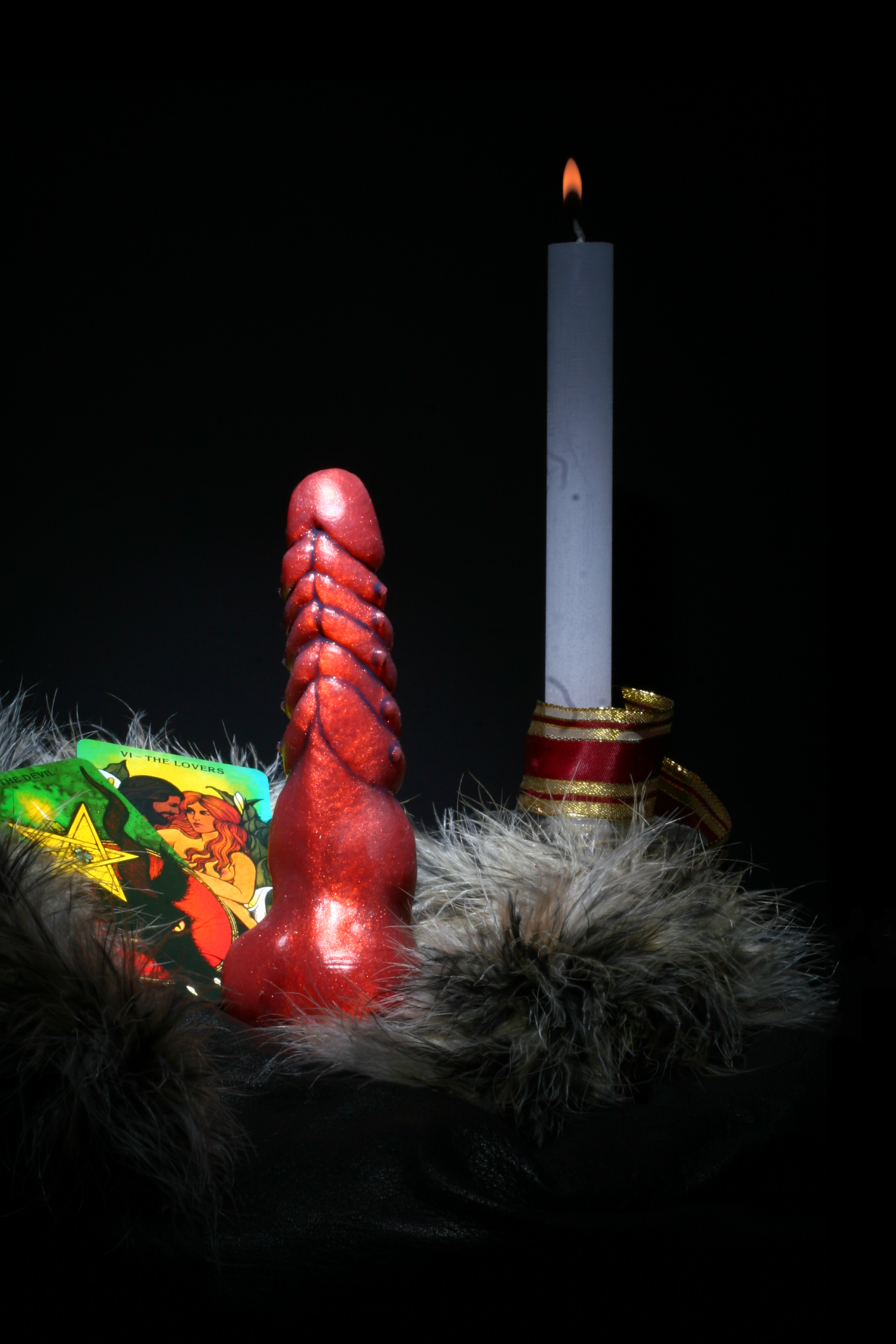 This incubus' business is pleasure. The ridges and spikes he is endowed with may look intimidating, but they feel sinfully good to touch. This indulgent toy is made out of a squeezable but firm bodysafe platinum silicone (shore 15). The default color is a fiery coppery orange/red, with handpainted shading. Contact me for alternative color options.