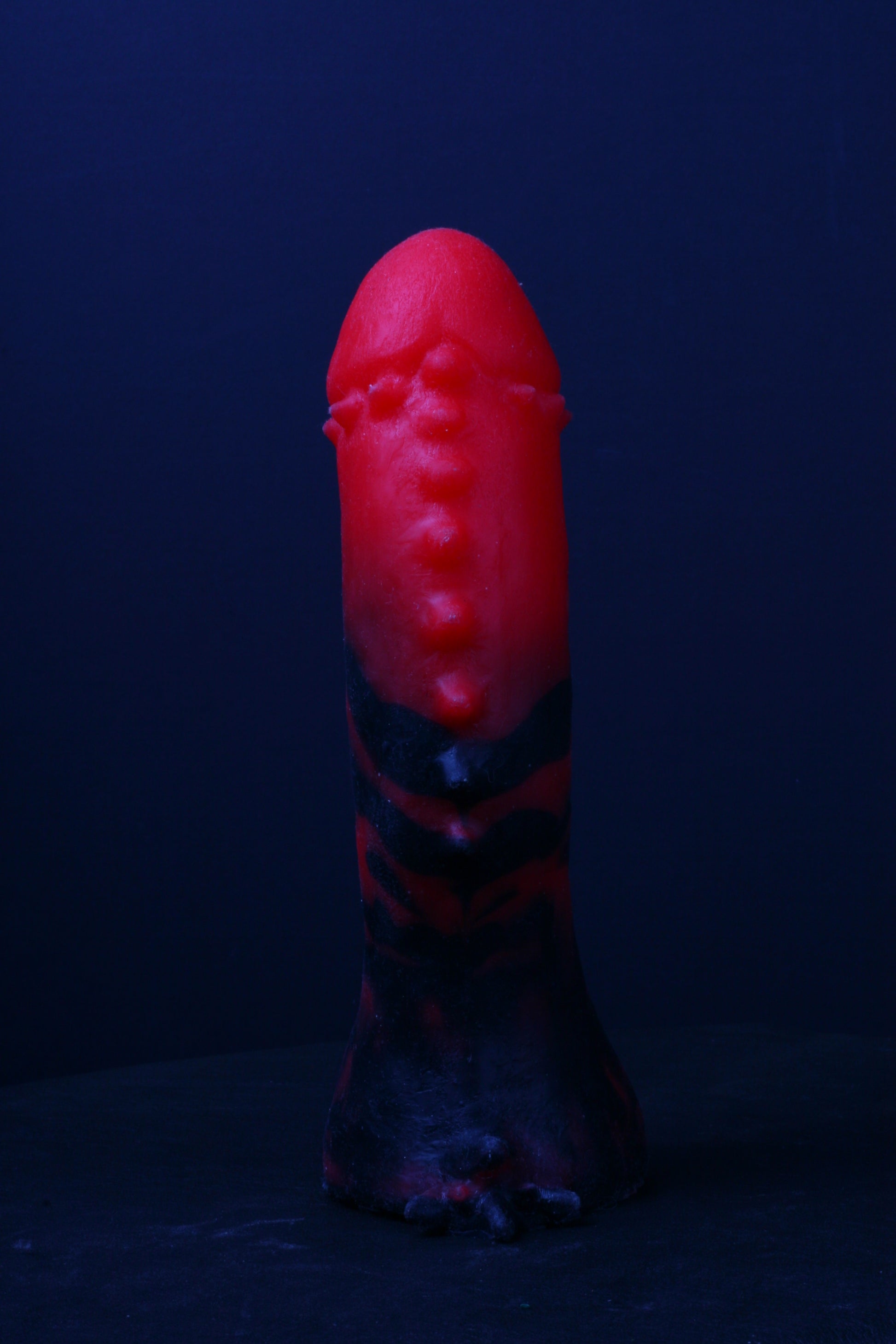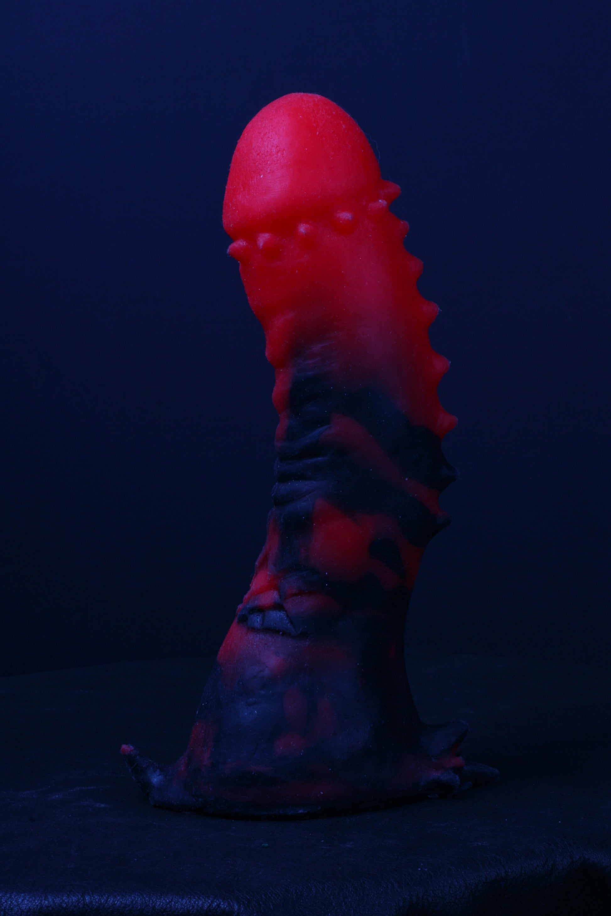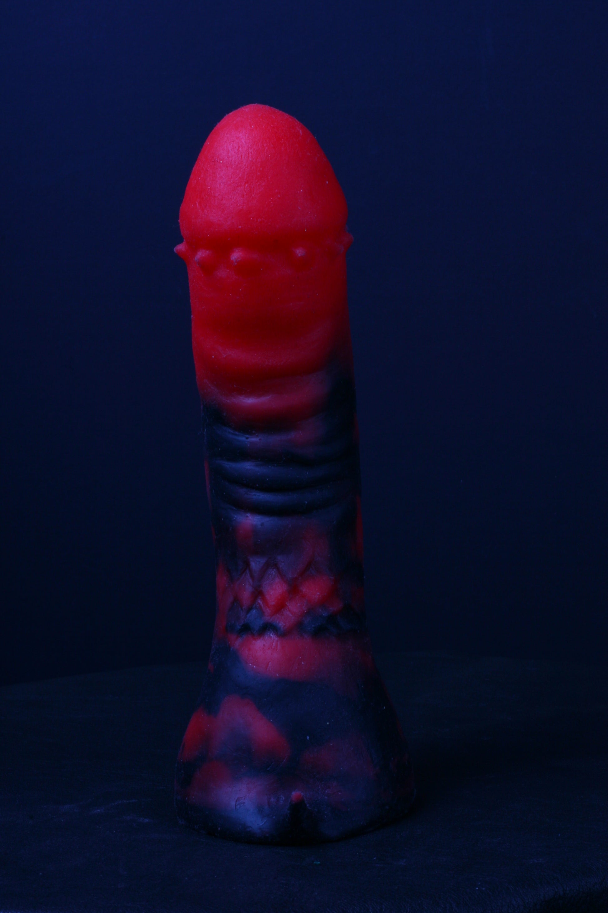This devil has a gentle side too. It is made from a lovely soft, squeezable silicone (shore 5). The spikes and wrinkles feel wonderful to the touch.